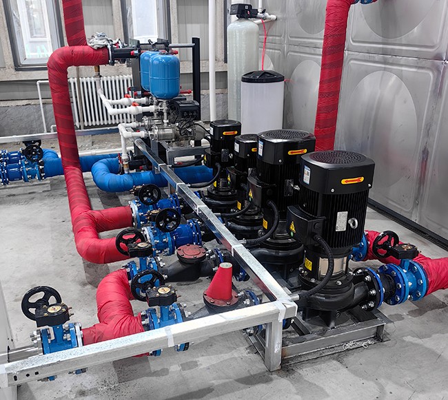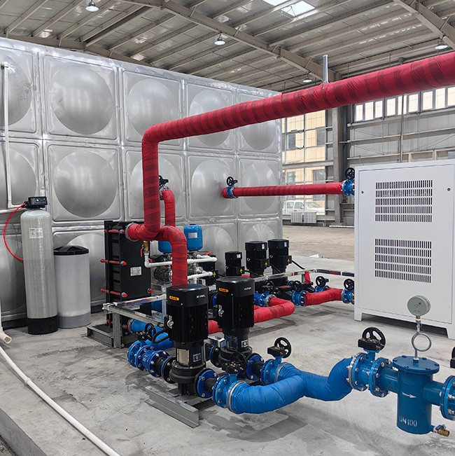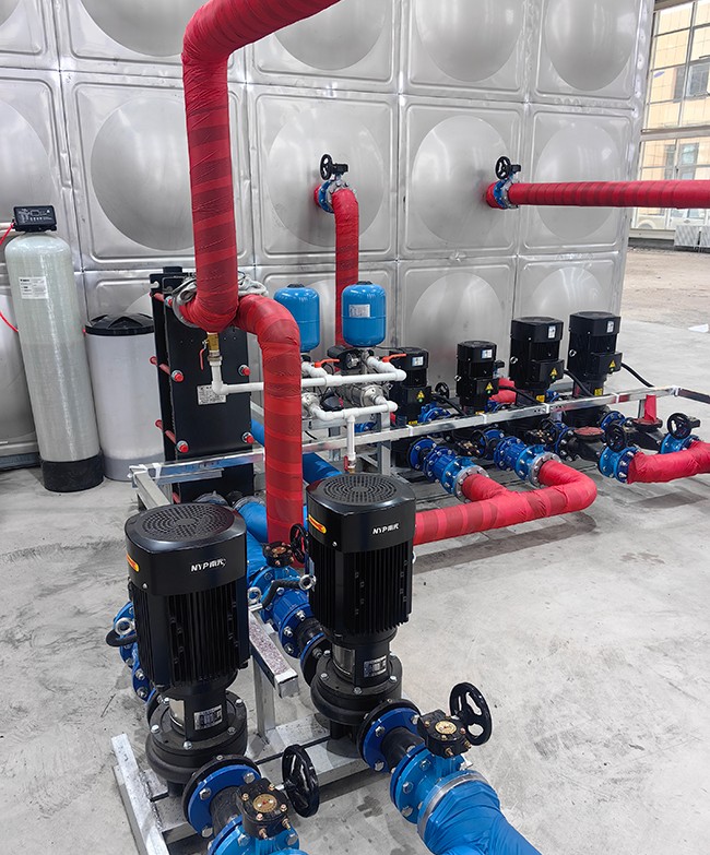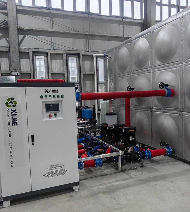 采用总功率:360KW 储能式控制机组(1台360KW),配合1个60m³的蓄热水箱。每晚利用谷电时段 进行储能加热,供暖效果良好。